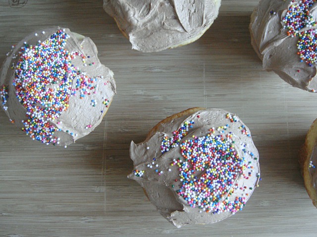 A basic vanilla cake with chocolate frosting is my favorite combo everβthese look like they came out delish!