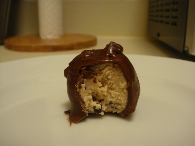 YUM! I made some of these with condensed milk instead of egg… but I gotta be honest, most of them never made it as far as getting chocolate-dipped…… also saw a recipe for cookie dough choc fudge that looked amazing! Anything with cookie dough wins 🙂 Yours looks pretty!